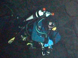 Locateds between Dresden and Chemnitz in the southeast of Germany, the small town Miltitz is hiding an unique diving spot beneath tons of rock - the old chalk mine. The mine is an attraction, not only for us divers. The dry section is as interesting, as the flooded part of the mine are. The explorers did a great job - most of the passages are secured with permanent guide lines. One can find huge halls, reaching easily 180 feet, flooded by crystal clear water with +60 feet visibility (if you are not the last, getting into the water... ;-) Diving is possible for cavern and certified cave divers with one of the local guides. Reservation must have been made before diving with one of the tour operators. One you can find here You will find a nice mix of divers of all levels, interested beginners in cavern diving up to the fully equiped technical diver, holding three stage tanks beside, rebreathers are seen regulary... Diving is possible with open water scuba gear for cavern tours as well as technical diving equipment. There is no shop nor rental or filling station around, one have to bring all diving gear to the site.